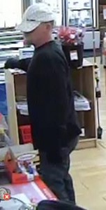 The man is described as being of Caucasian appearance, 175cm tall, average build and with blonde hair. He was wearing jeans, a black jumper, white baseball cap, black gloves and was carrying a black bag.