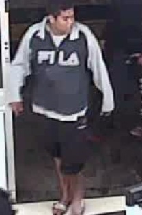 One of the suspects who police need help identifying is described as of Aboriginal appearance, about 170cm tall, 95kg, with a solid build and short cropped black hair. On one occasion he was wearing a dark zip up jacket with cream sleeves, with “FILA” in large print across the front, black shorts and thongs.